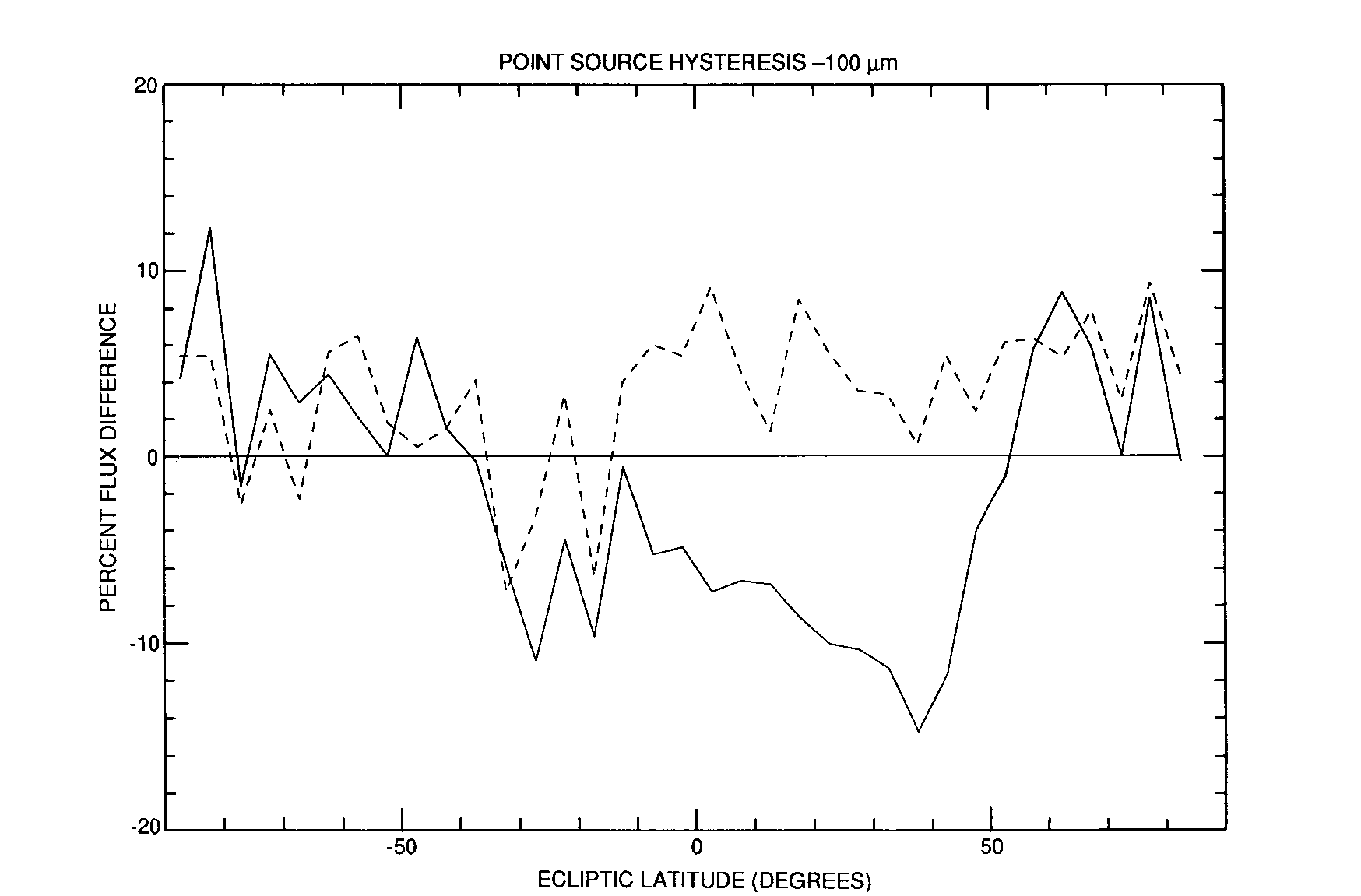 Independent information was obtained concerning the initial zero point for each detector from a single `chop' experiment performed during the first week of the IRAS mission. The cryogenically cooled cover which was still in place allowed zero background conditions for detectors at 12 and 25 µm. Measurements agreed with results from the TFCALs to within 6% and 10% at 12 and 25 µm. No measurements were obtainable at 60 and 100 µm because of uncertainties in the 60 and 100 µm background levels with the cover on (Main Supplement §VI.B.3.a).