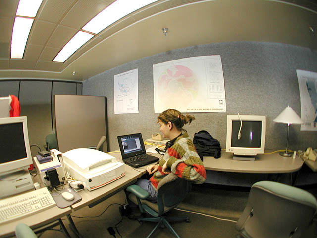 Gwynne working on her journal over in the second floor Crary computer room, also the library.