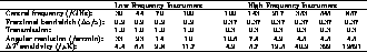 Table 1. At each frequency we assume a Gaussian beam with the