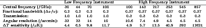observed at each of the ten Planck Surveyor frequencies listed in