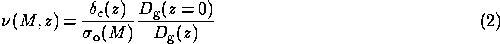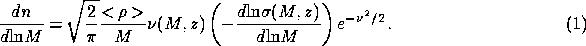 The easiest way to understand this dependence is by considering the mass function, the number density of collapsed objects as a function of mass and redshift (e.g. Bartlett (1997)). In `standard' models, based on the growth of initially small density perturbations with Gaussian statistics, this takes the general form of a power law times a Gaussian (Press & Schechter (1974)):