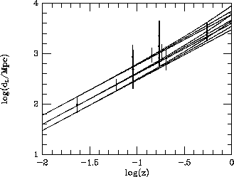The X-ray flux scale of ROSAT is critical in these measurements, and this is presumably uncertain by 5 per cent or so, which will introduce a systematic 5 per cent error in all the distances. For the SZ effects, errors at the 5 per cent level in the brightness temperature scale are also possible: this will introduce a systematic 10 per cent error into all distance measurements made by a particular instrument. There is therefore some freedom at the level of 10 per cent or so to move the measurements of sets of clusters made by particular groups up or down on Figure 2, and the freedom to move the entire set which use ROSAT data up or down by about 5 per cent. It is thought that calibration errors in the X-ray spectroscopy are less important.