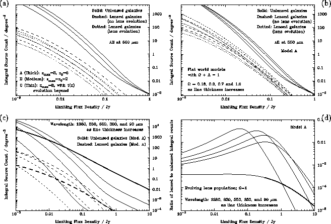 model. The wavelength dependence of both the lensed and unlensed counts is