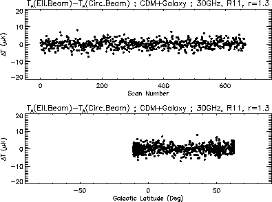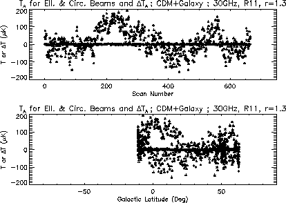 temperature observed by asymmetric and symmetric beams for a typical scan