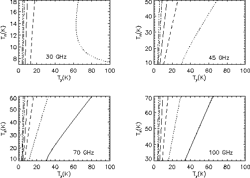 (three dots-dashes). For the channels at 30 and 45 GHz the case