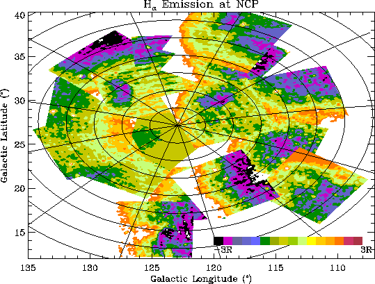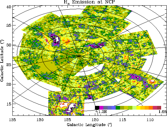 The final maps (Figure 2) are not perfect, the image boundaries are still occasionally visible. The uncertain geocoronal contribution makes it impossible to normalise the maps to the same baseline with enough confidence to produce a map of the entire NCP region. In this report, however, we are only concerned with the differential spatial structure on scales much smaller than any individual image, and for that purpose, the cleaned maps are quite adequate.