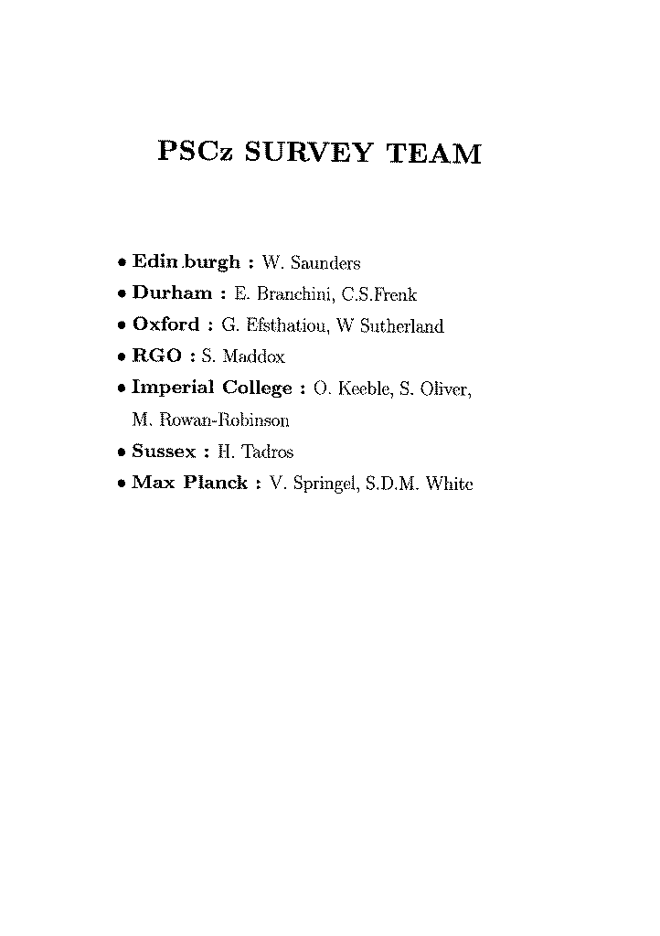 Copies of the transparencies of the Joint Plenary talks from PPEUC can be found below. These are in the form of electronic versions of the talks where possible, or scanned versions of black and white photocopies of the transparencies otherwise. Each talk is stored as a single uncompressed postscript file. One exception is Professor Frenk's talk where the transparencies were scanned in colour. In this case, the complete talk is stored as a single compressed postscript file (5.8Mb compared to 117.6Mb for the uncompressed file) and the individual pages are also made available as separate gif files.