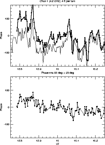 Figure 11: Top: Phase measured using the JCMT-CSO interferometer observing