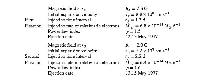 satisfactory fit of the radio light curves with two plasmon ejection events is