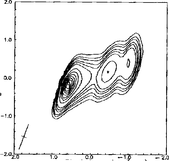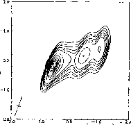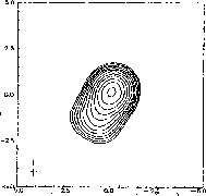 Let us consider in more detail a map of the source 0454+84 (see Figure 1a in Gabuzda et al. (1989)). A qualitative result of the fitting the structure of the fully evaluated stationary jet in the model to this image is shown on Figure 2. The diagram pattern has been used as in Gabuzda et al. (1989). The values obtained for the model parameters are shown in the caption of Figure 2. Contours are the same as in Gabuzda et al. (1989) in Figure 1a. One can see a good agreement between the observed and model maps by visual comparison.