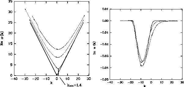 Figure 1: The dependence of the real (left plot) and imaginary parts (right