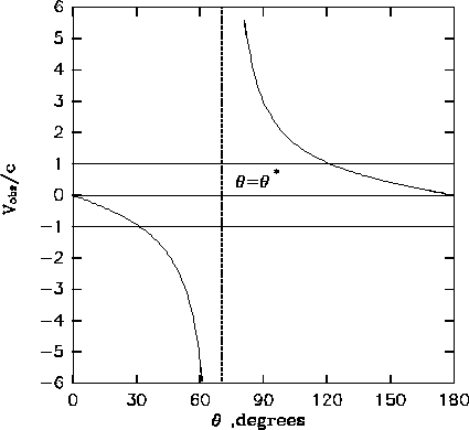 Figure 3: The dependence of the observable velocity of the standing wave pattern
