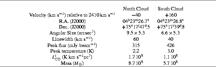 Table 2: Characteristics of the two main central clouds