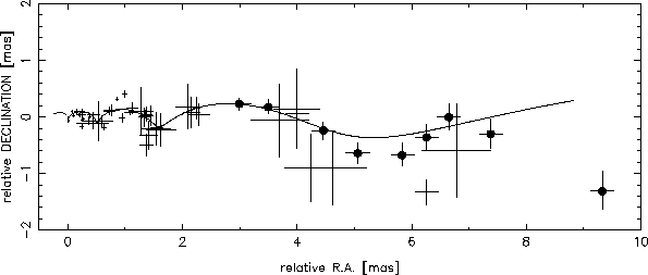 Figure 2. The data points from 0-2.5 mas core