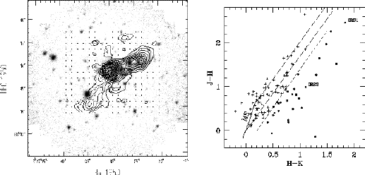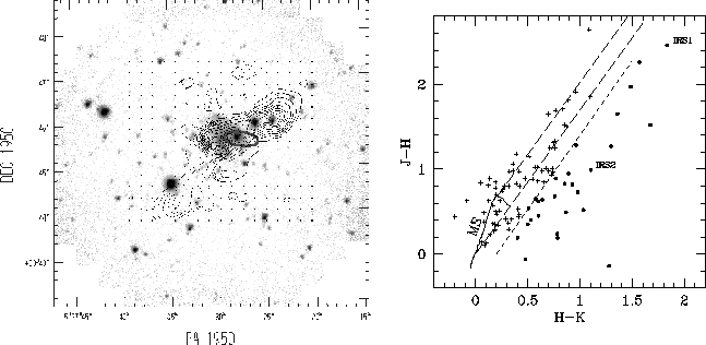 continuum source. On the right a (J-H, H-K) colour-colour diagram of the