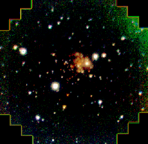 shown. A cluster of very red sources is detected at the center of the image,