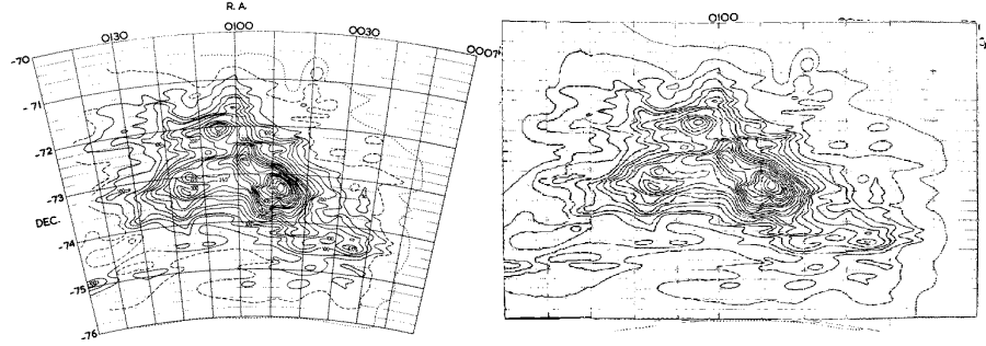 reproductions of HI contour plots from Giovanelli et al. (1973). In the lower