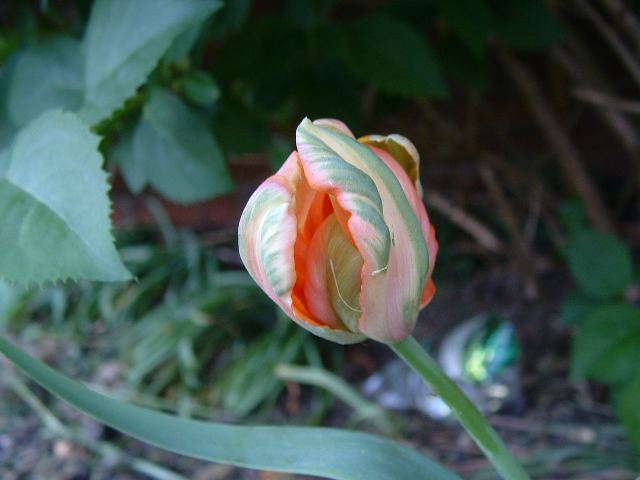 This is an aborted tulip. It's quite dark in that bit of the garden.