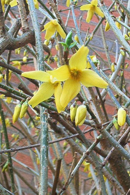 Flowers first, leaves afterwards.