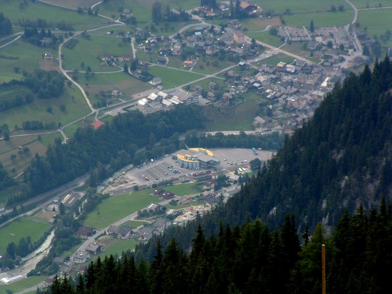 Straight down the valley: Le Chable. The grey and yellow building is the start of the cable car that goes to Verbier.