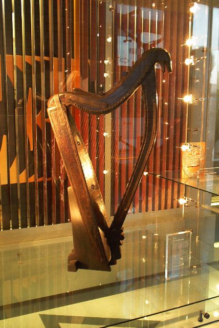 the Guinness harp - it was a beatiful antique instrument with metallic strings (no tension), and probably not playable anymore.
