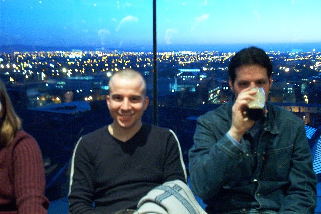 Anze and Joern in front of the city lights