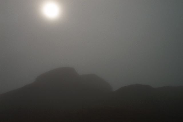 Climbing towards the cliffs at Carrick through the atlantic clouds