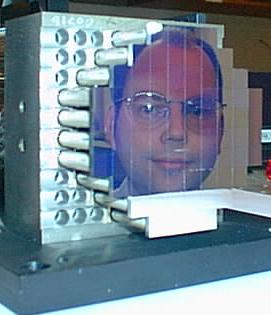 The picture above is my face reflected in the deformable mirror of the ELECTRA adaptive optics system which I worked on in my previous job at Durham University. This mirror has 76 individually steerable elements whose positions are updated 1000 times a second to correct in real time for atmospheric distortions to astronomical images.