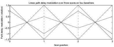 through small changes in the differential delays. The scanning is performed by the fringe modulators. The modulators modulate small delay