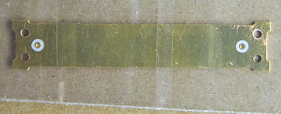Because we decided to put power splitters on the output side of the channelizer, we needed a way to cross signals. There are a number of ways of doing this, and we investigated many of them. The easiest method is to jump on signal over the other with a wire jumper. We wanted to avoid the impedance jump and the phase variability of this method. All of the other options available at the time involved vias. The next easiest possibility is to make the dielectric substrate 2 -layered, then run one of the signals below the other. This method induces ~ -18dB coupling between the signals. More importantly though, it induces a slight phase shift in the high frequency signal. The way to completely isolate the two signals is to place a ground plane between the two transmission lines. This is generally how electronics manufacturers do it. We wanted to avoid this, however, because it was unclear how our circuit would perform with the ground plane separated from the case. The way to solve this was to make a small "jumper" which would span the short distance that it would take to cross lines. The jumper is a 3-layer circuit. Because it has ground plane on either side, it is a stripline instead of microstrip circuit. This, of course, means that the design equations are different from microstrip circuits. Stripline circuits are in general thinner than microstrip circuits. See Pozar for more details. At either end of the jumper, there are "blind" vias to the transmission line as well as through-pads on the ground layer.Blind vias are vias that do not extend through the entire board and are generally more expensive that through vias. The idea is that we would laminate the jumpers on the underside of the channelizer. Because we were going to do this by hand, we needed a way to align the laminates. That is why there are holes at the end of the circuits. The lamination process would involve inserting pins through the holes during mounting. The jumper is also "edge plated", which ensures that the ground connection is sold around the perimeter of the device. There is also oval shapes cut from the edge to improve the ground area.