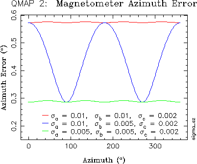 These uncertainties result in the following uncertainty in the magnetometer azimuth as a function of azimuth: