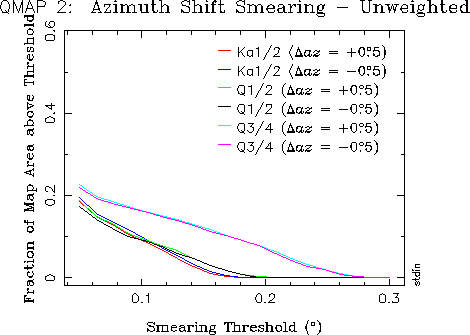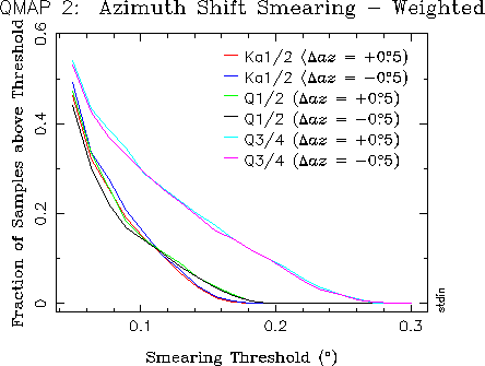 The beam sizes are from 0.65 to 0.9 degrees, so the beam broadening due to an azimuth shift of 0.5 degrees in either direction has a significant impact on the maps.