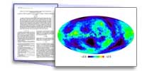 The images below represent full-sky maps of the cosmic microwave background anisotropy and foreground signal from our galaxy (in red). The 5 frequency maps are constructed from the differential time-ordered observations of the ten WMAP differencing assemblies. Galactic foreground is stongest in K band, weakest in V and W bands.