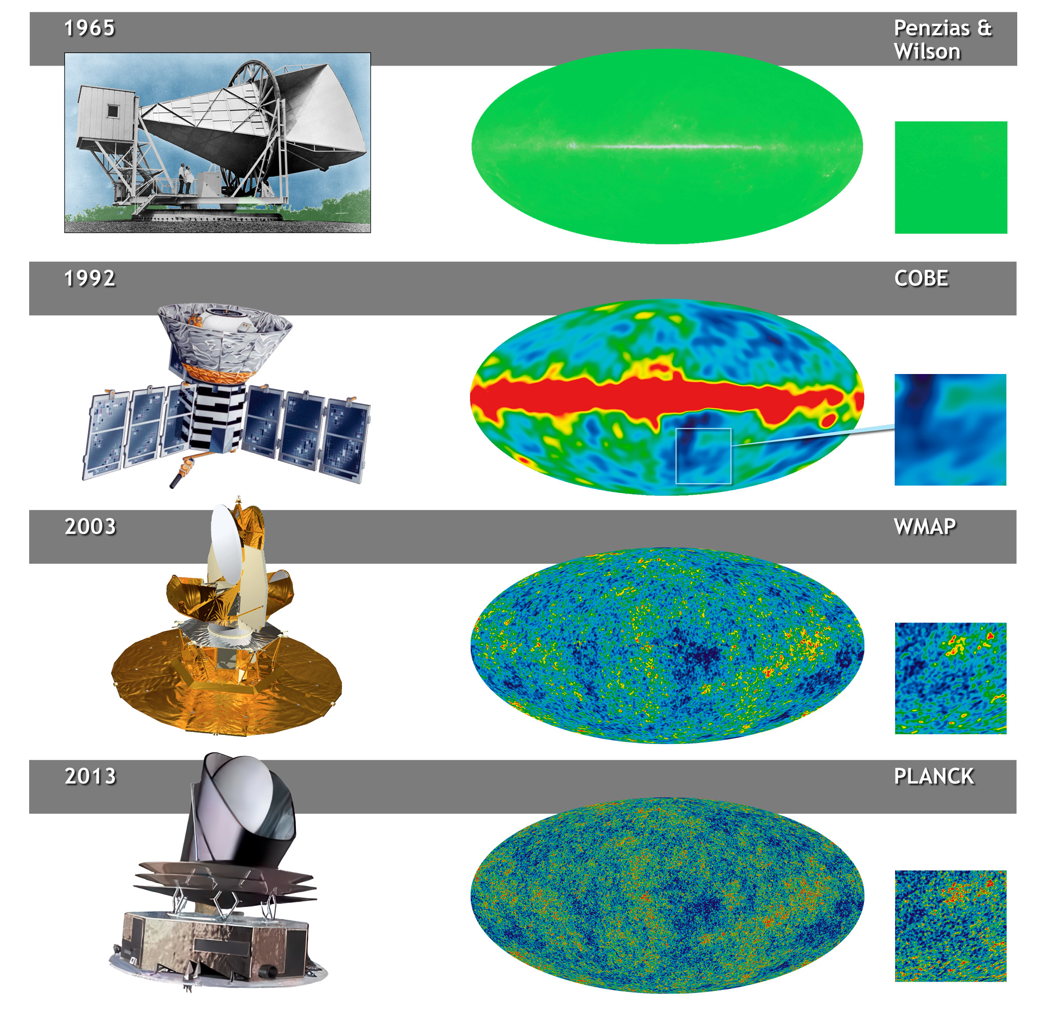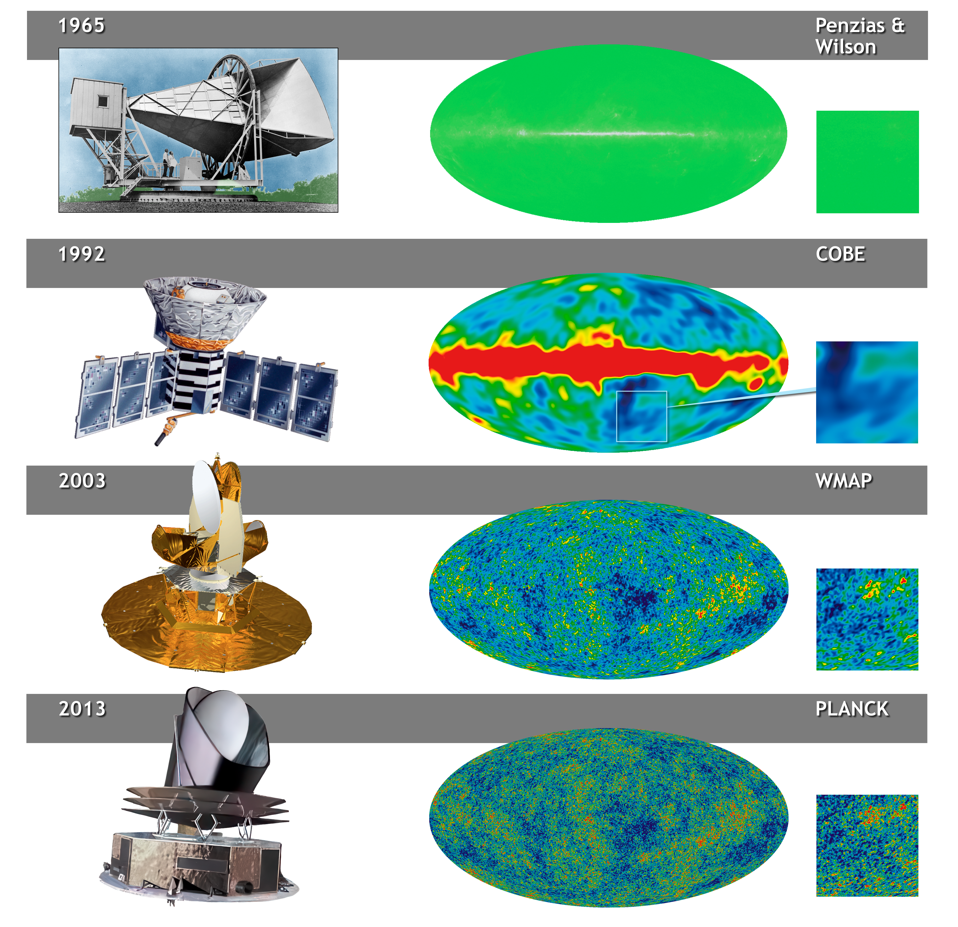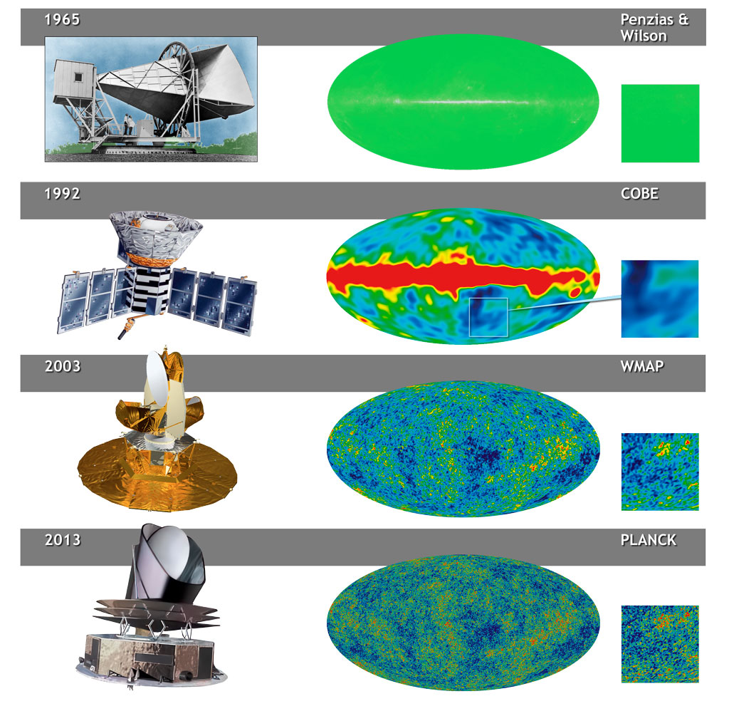 History of CMB Discvery Spacecraft Views of the ΛCMB sky as seen by major experiments over the past 60+ years.